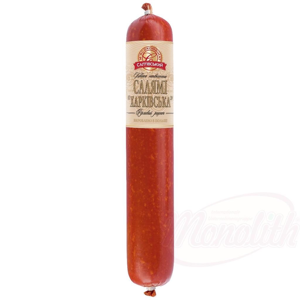 Gerookt varkensvlees en kippenworst “Kharkovskaya” in het Oekraïens